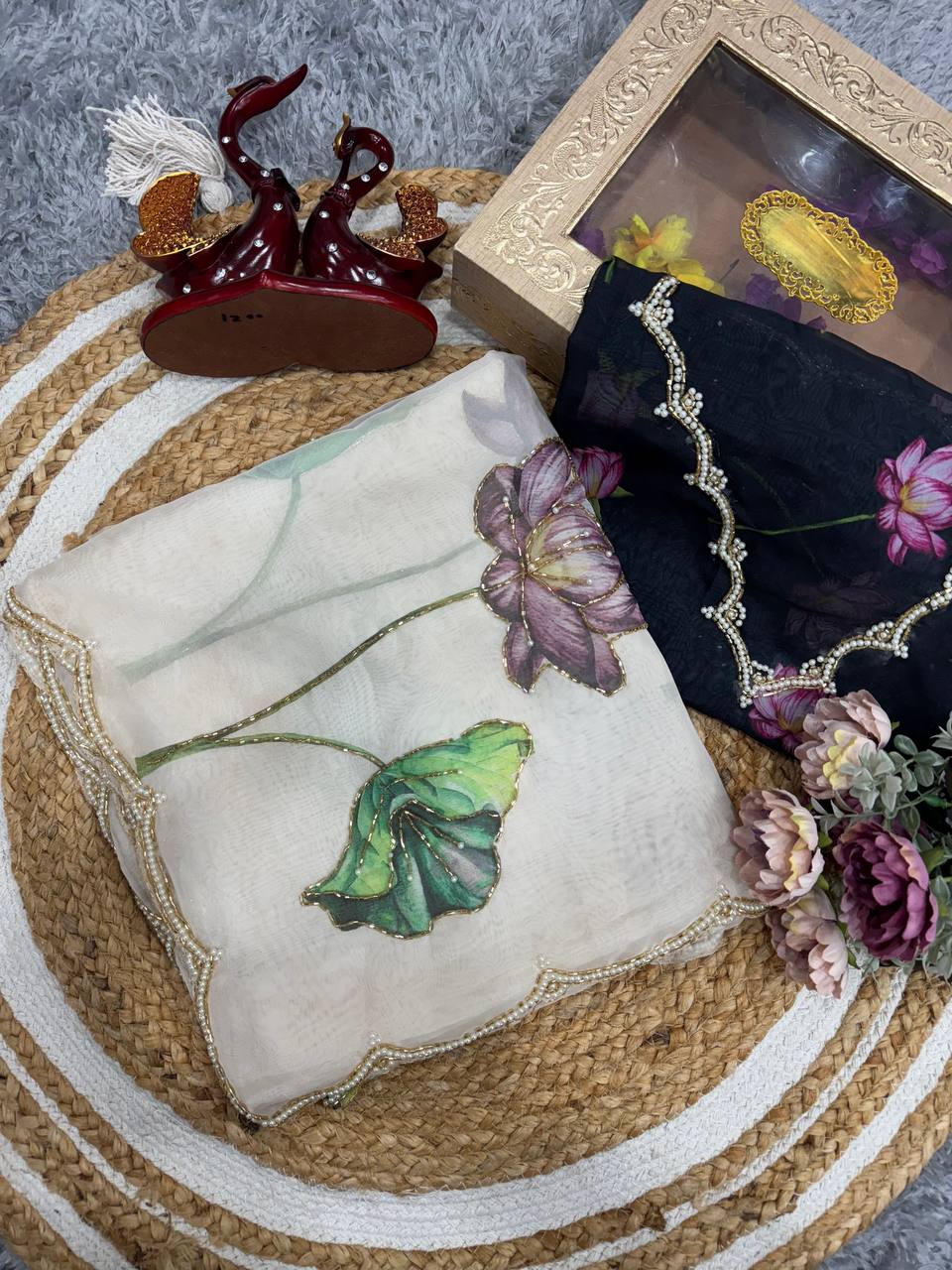 Floral Printed Organza Saree